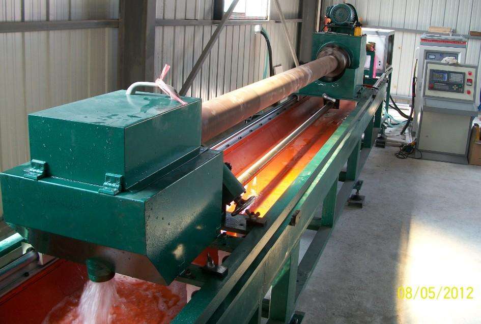 以前,金屬材料(如鋁合金 鐵 銅等)生產(chǎn)成型的工件產(chǎn)品采用硝酸鹽(KNO3)浴槽處理。隨著金屬材料(如鋁合金 鐵 銅等)生產(chǎn)成型的工件產(chǎn)品長(zhǎng)度的增加,這類淬火方式已被淘汰,F(xiàn)階段國(guó)內(nèi)、外用得比較普遍的是中高頻淬火爐,此類設(shè)備具備可以自動(dòng)化生產(chǎn),淬火冷卻池直接設(shè)在爐子下方。這類高頻淬火爐具備以下特點(diǎn):